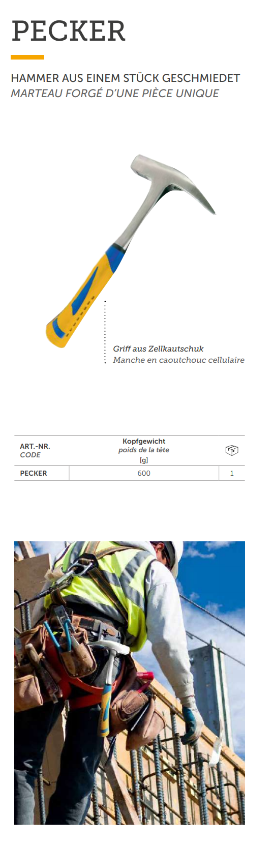 PECKER Zimmermann-Hammer, Stahl ca. 35x2x20cm