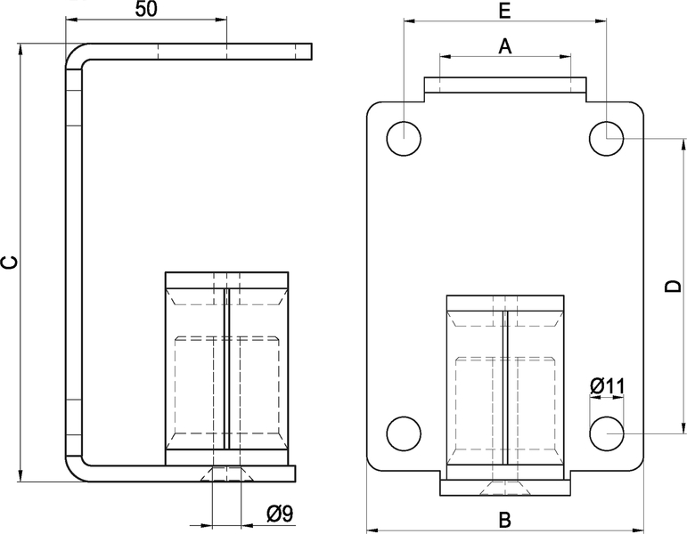 Pfostenhalter eckige Form, rostfrei geschliffen 33,7