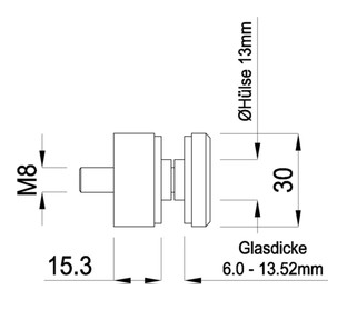 Punktglashalter 30mm mit M8 Schraube, 1.4301 M8-Glas 6.0-13.52 mm