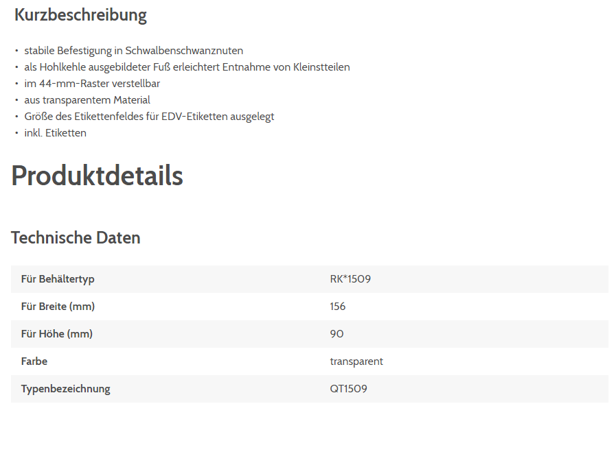Querteiler BITO QT1509 für Regalkästen RK1509, QT1509 transparent für 156x90