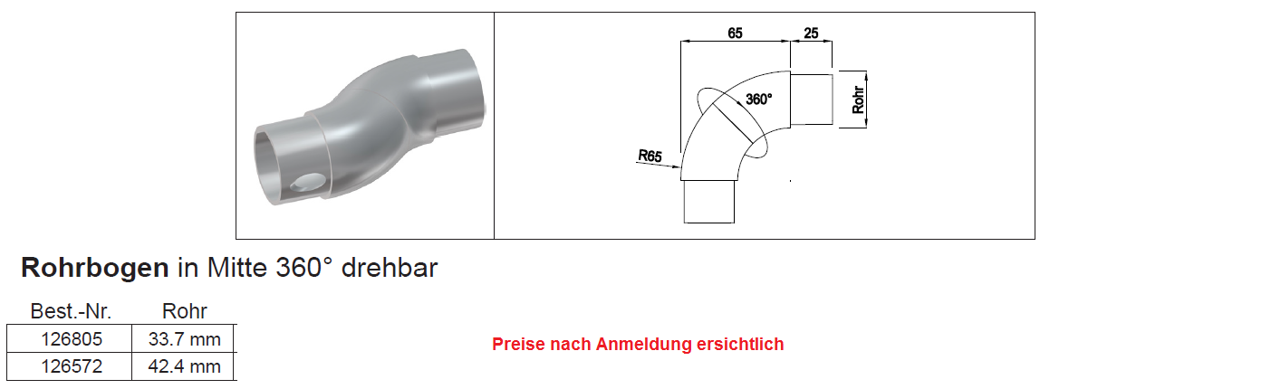 Rohrbogen drehbar 360 Grad, rostfrei 33,7x2