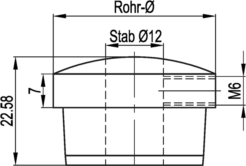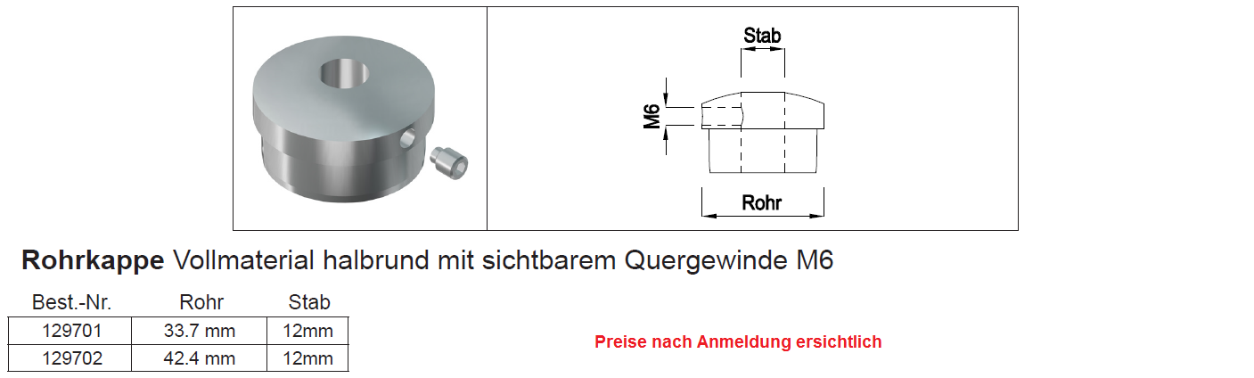 Rohrkappe halbrund mit sichtbarem Quergewinde M6, rostfrei 33,7-12