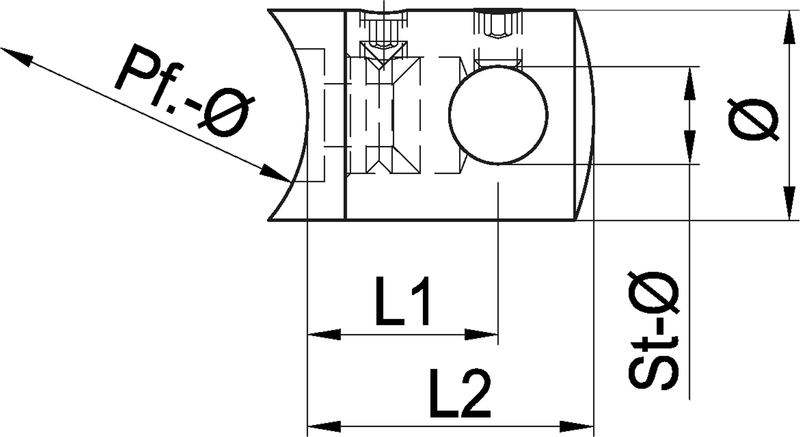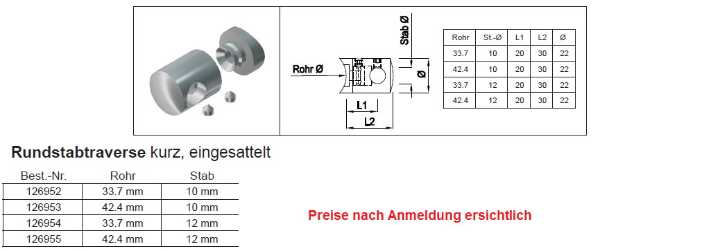 Rundstabtraverse kurz eingesattelt für Stab 12mm, CNS L1:20-L2:30 33,7