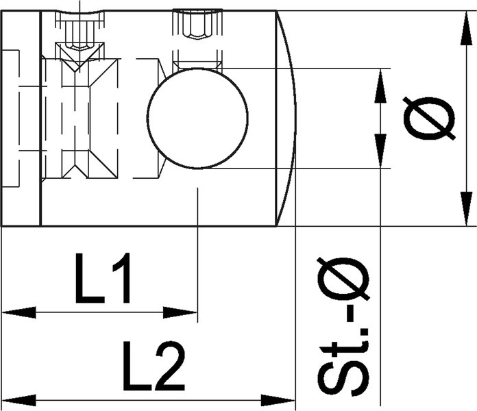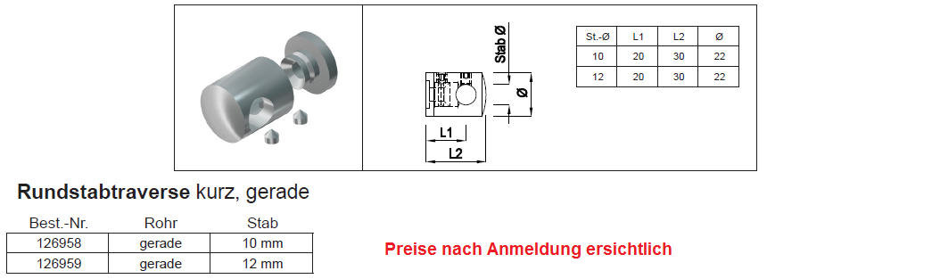 Rundstabtraverse kurz, gerade für Stab 10mm, CNS L1:20-L2:30