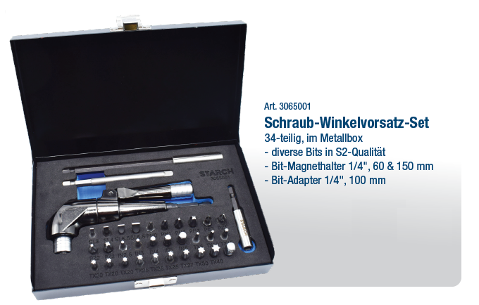 Schraub-Winkelvorsatz-Set 1/4", 34-teilig 1/4"