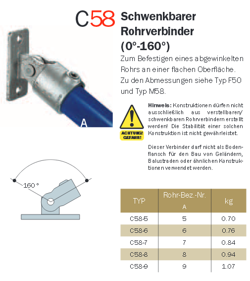 Schwenkbarer Rohrverbinder Kee Klamp Temperguss, Typ C 58-5 feuerverzinkt 3-4 Zoll