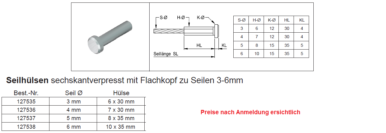 Seihülsen sechskantverpr. Flachkopf Seil 5, 1.4301 8x35