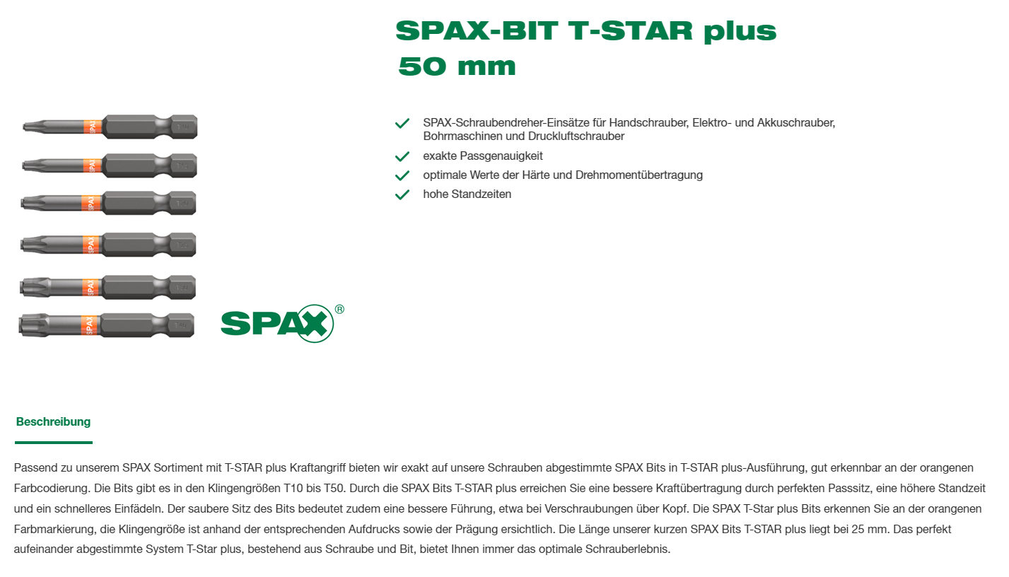 SPAX® Bit 1/4" T-Star plus, lange Ausführung, Stahl vergütet 50T20