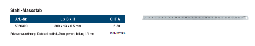 Stahl-Massstab STARCH Typ B, Edelstahl rostfrei 300x13x0,5