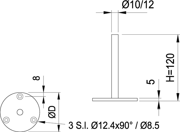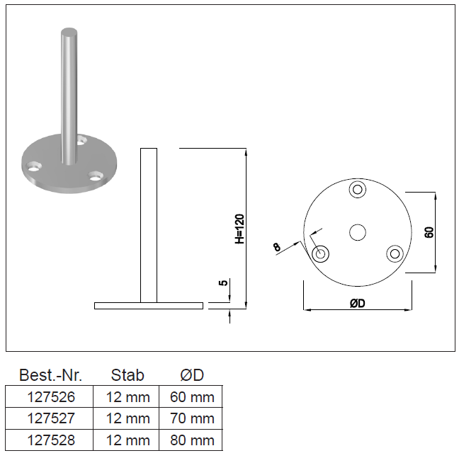 Stand-Konsole, 3-Loch, ohne Auflage geschweisst, CNS 60x5