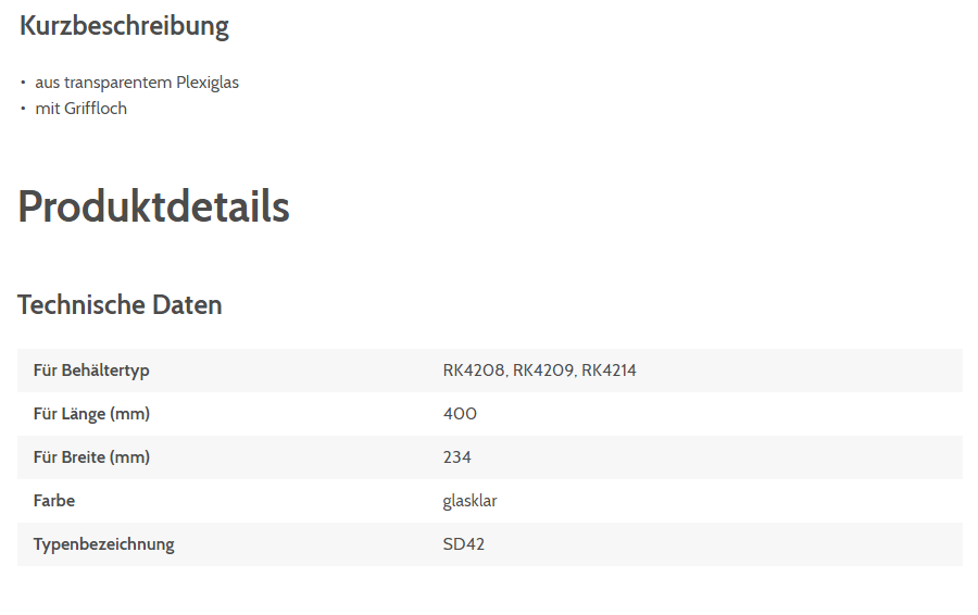Staubdeckel BITO SD42 für RK4208/RK4209/RK4214, SD42 Plexiglas, transparent 363x223
