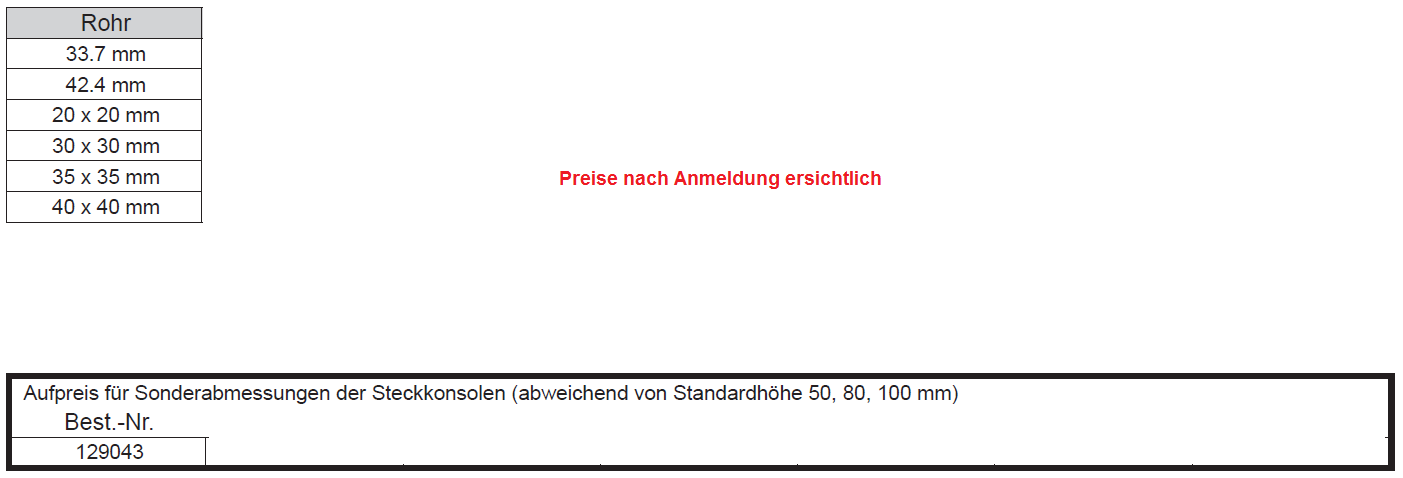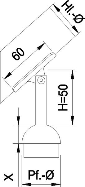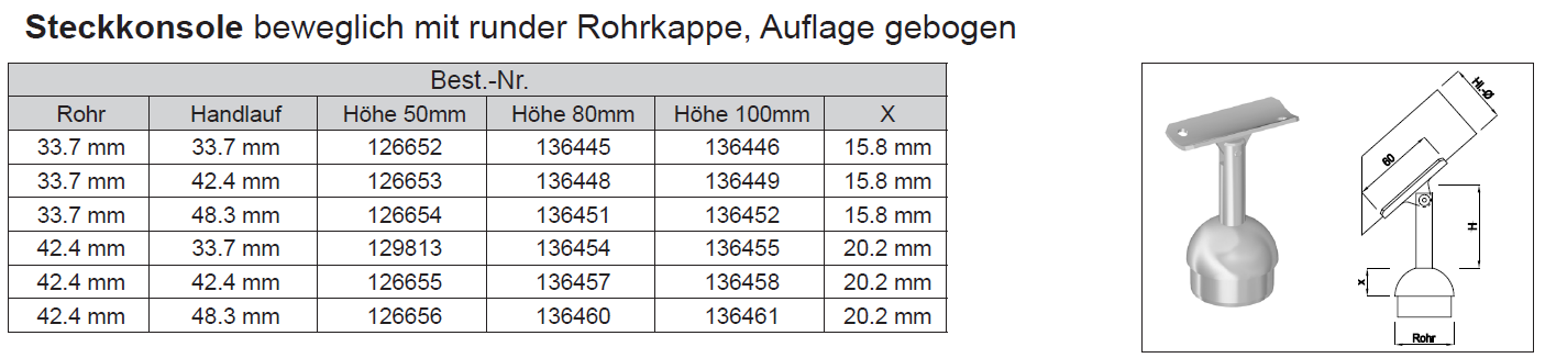 Steckkonsole beweglich mit runder Rohrkappe, 1.4301 33,7 H:50 A: 33,7mm
