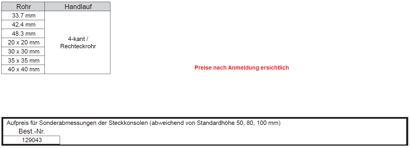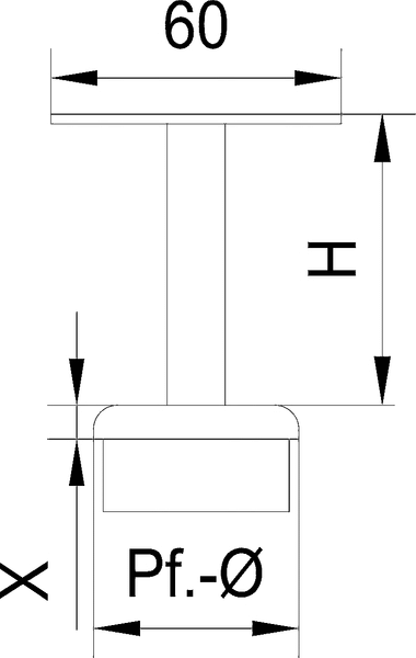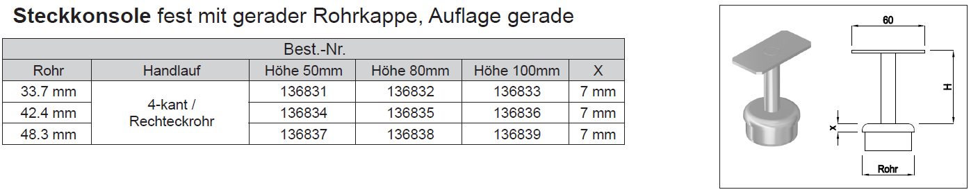 Steckkonsole fest mit gerader Kappe, 4kt. Auflage, 1.4301 48,3 H:50
