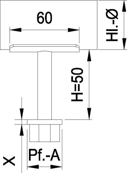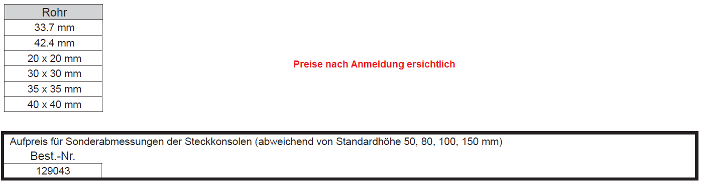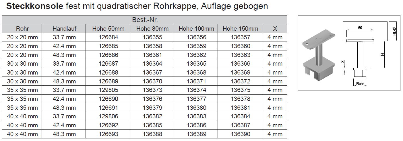 Steckkonsole fest mit quadratischer Kappe, 1.4301 20x20 H:50 A: 33,7mm