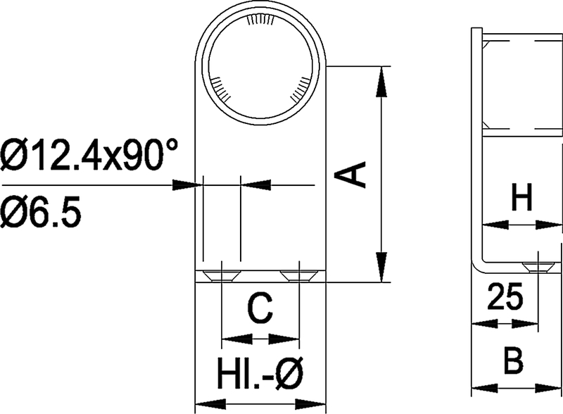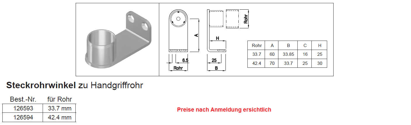 Steckrohrwinkel zu Handgriffrohr, rostfrei geschweisst 33,7