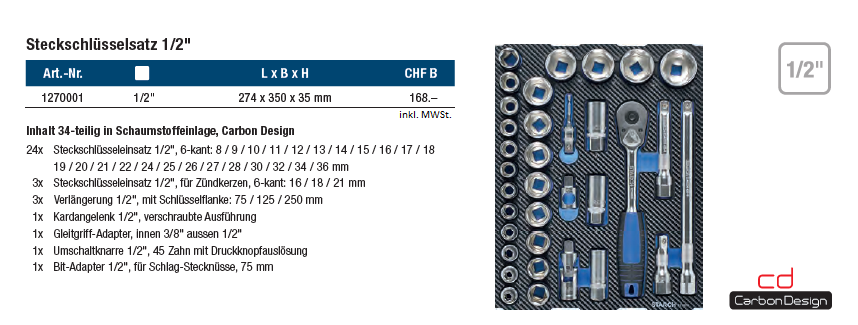 Steckschlüssel-Satz 1/2"STARCH 34-teilig, 274x350x35