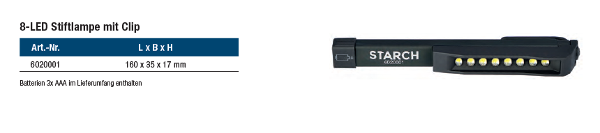 Stiftlampe mit magnetischem Clip STARCH 8-LED, 160x35x17