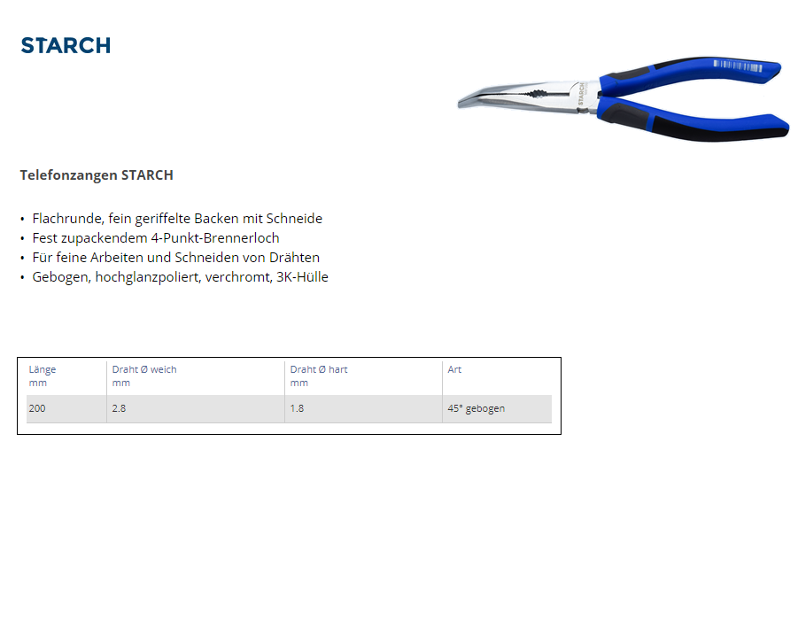 Telefonzange gebogen STARCH, verchromt, hochglanzpoliert 200mm