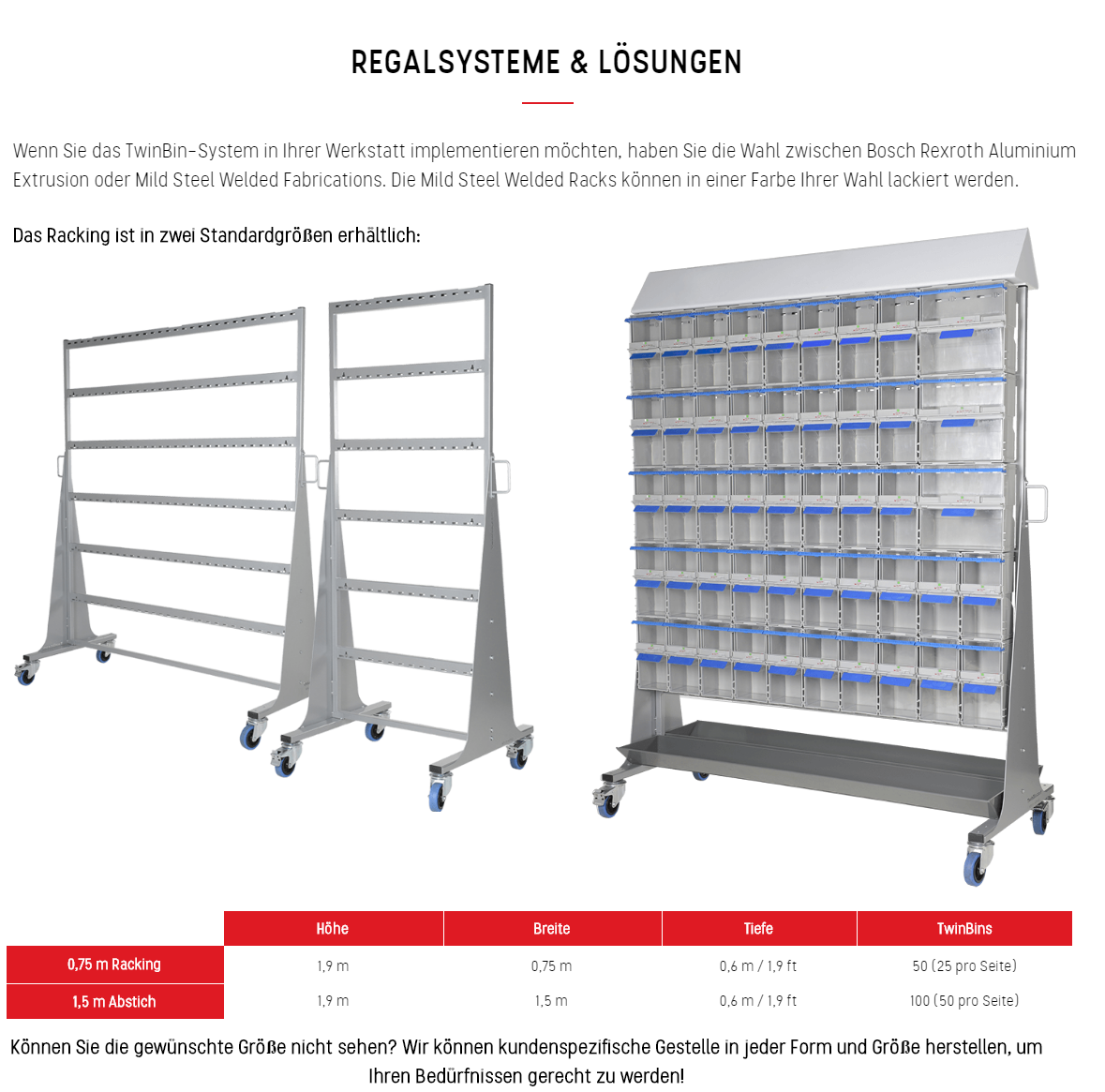 TwinBin Rack Sammelbehälter 2Stck., Aluminium für 1500mm Racks