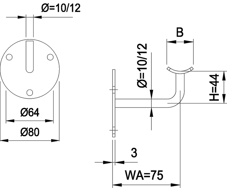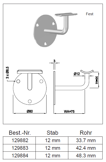 Wandkonsole mit waagrechter Auflage + runder WP, CNS 1.4301 geschweisst 48,3-12