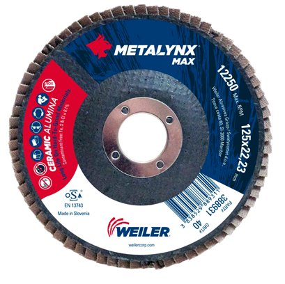 Weiler Fächerschleifscheiben, MAX CERAMIC, Typ F29 gewölbt Körnung 40 125x22,23